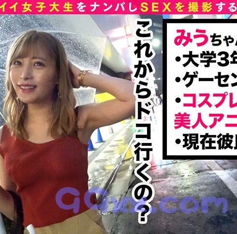 この企画は街行く女の子をガチでナンパし、リアルな素人女子のセックスを撮影、記録する企画である。今回のターゲットは池袋のゲーセン前で呼び込みをしていた色白美肌の女子大生ミウちゃん(21)。アニメオタクだそうで、その趣味が高じてゲームセンターでバイトしているらしい。バイトが終わったらコミケ用のコスプレを買いに行くとのことで、取材も兼ねて同行させてもらうことに。ゆるふわ癒し系のミウちゃん!取材を引き受けてくれたお礼にお目当てだったというコスプレ衣装をプレゼントすると思わずキュン!としてしまうような可愛い笑顔を見せ、とっても満足気な様子!「じゃあこれからコミケのリハーサルしちゃいますか?」という提案をすんなり受け入れ、ホテルイン(笑) 実は彼女、車やカラオケなどどんな場所でも、誘われれば流されてヤってしまう天然系ヤリマン女子だった!!そんなこと聞いたら黙っちゃいられない!お酒も進み盛り上がって来たところでさっそくイタズラ開始♪恥じらいながらもムラムラが滲み出ていて萌え~!服を脱がすと透き通るように綺麗な肌がお目見え!神掛かった美乳・美尻・美マンの持ち主だったのだ!!さらに男に尽くす舌技がハンパない!!チ○ポを根元までずっぽり咥え込むおしゃぶり顔がエロすぎる!!露出度高いコスチュームも激エロ!ってことでもう我慢できずにギュギュっと挿入!!激しい生ハメ→酔いを醒ますすんごいハメ潮を連発!!甘え声からのイク時に出る低いあえぎ声も堪らない!清純そうに見えてかなり濃いめなセックスを見せてくれたそのギャップも最高!!潮と精子が乱れ飛び白濁湖と化すベッド!どっぴゅん連続3発射! !