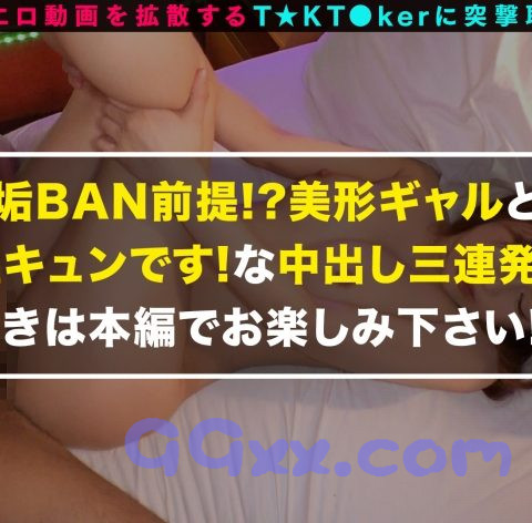 T☆kTokでエッチな動画を投稿するエロ可愛い女にDM(ダイレクトメッセージ)で連絡を取り、その場のノリでしれ~っとSEXまでしちゃおうという、次世代ナンパ企画!(1) 事前にスタッフが連絡を取り渋谷区の神宮前で待ち合わせた、今回のT☆kT●kerは「リアナ」ちゃん(22歳)!現役女子大生の彼女はT☆kTokでエロい動画を投稿してイイネとフォロワーを稼ぐことにハマっているようだ。顔面偏差値高めでスタイルも抜群の彼女は今まで男からDMが来たようで40人くらいのフォロワーと直接会ったらしい。その中でSEXまでした人はいるのと聞くと「ほぼ全員」と驚きの答えが!まさに会えばヤレるT☆kT●kerだ!では我々もとノリで聞いてみると「余裕でOK」と嬉しい返答がさすが今時のヤリマン軽すぎる!(2)早速ホテルの一室へ到着したのも束の間、速攻で電マオナニーを見せつけてくれるリアナちゃん!いやらしすぎる光景を目にして我慢ができず彼女の吸い付くような美ボディーを味わうなまハメSEX!(3) 一回戦を終え今度はT☆kTokで着ていたエッチな衣装で濃密プレイ!彼女の柔らかくて形のいい神尻が際立つ食い込みパンツでジュボジュボフェラ!電マとバイブで責め立てた後生チ○ポで感じまくりハメ潮が大噴射そのまま中出し!エロすぎるこのカラダ!(4)これで終わりかと思ったらまだまだヤリたりないとまさかの3回戦突入!濃密に絡み合いながら二人の性欲は最大限まで高まり爆発!休む間もなく何度も繰り返されるハードSEXに気持ち良すぎてそのまま中出し!チ○ポを抜き白い精子がマ○コから垂れ降りる!十分すぎる撮れ高の濃密SEXを見せつけてくれたリアナちゃんでした♪