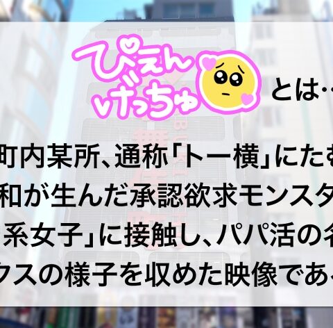 この企画は、お金をたくさん欲しい『ぴえん系女子』またの名を『地雷系女子』に、お金持ちのパパを紹介する代わりにエッチな事をさせてもらう企画ですwww