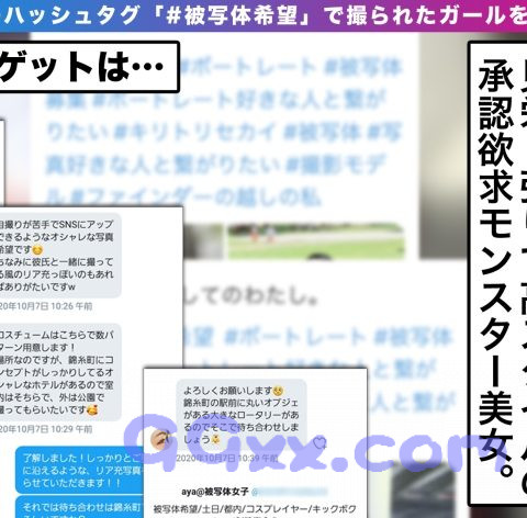 SNSの自分のプロフィールに「#被写体希望」と載せる女子は簡単に出会える上にヤレる!?承認欲求に飢えた女子にDMアタック!!令和の次世代ナンパの火ぶたが今落とされる!?バリバリ意識高い系の高スタイル美女OLをゲット!!彼氏が欲しいけどいないというのは、グンバツのルックス差し引いても高飛車で見栄っ張りな性格のせいでは…!?まあでも一発ヤル分には無問題なんで、承認欲求も欲求不満マ○コも同時刺激で生チンを挿入させて頂きます♪