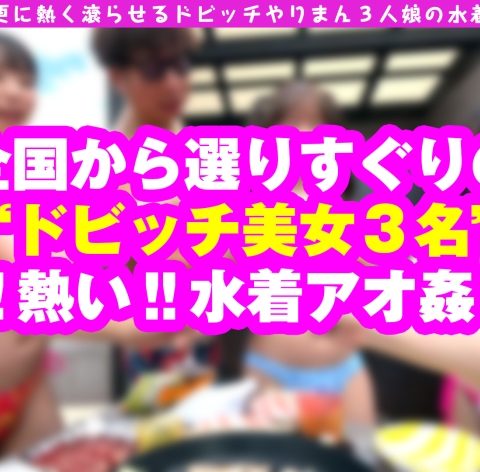 あらすじ:暑い今年の夏を更に熱く滾らせるドビッチやりまん3人娘の水着6Pスペシャル!!