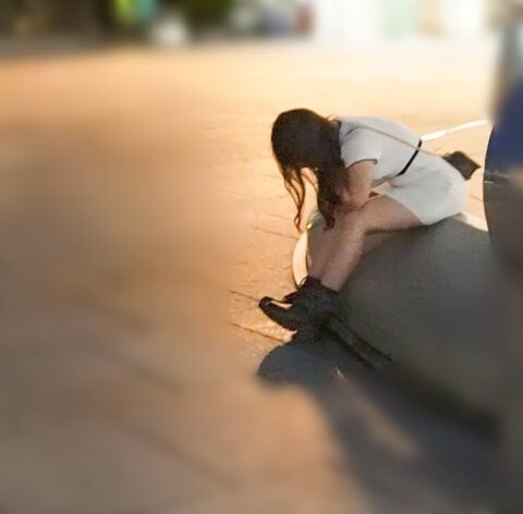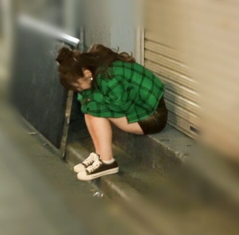 路地裏であぐらをかいている女を見つけた。