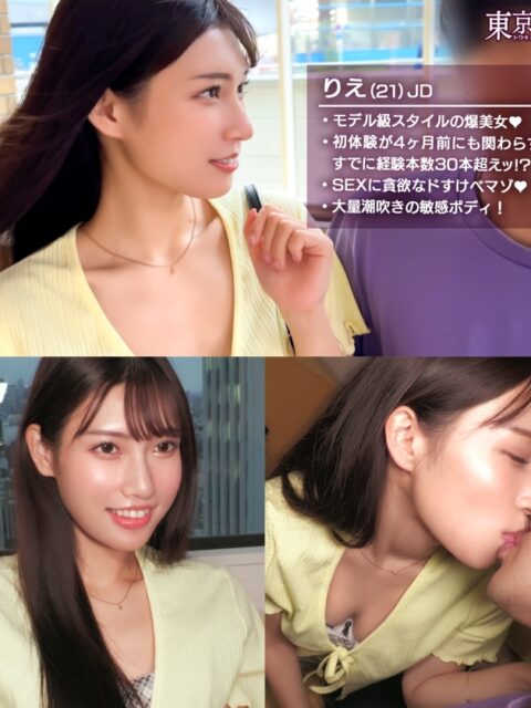 即ヤレちゃう東京のビッチ女たちと遊んじゃう企画。今回の美女は最近処女卒業したにも関わらず、すでに経験チ●コ30本オーバーの淫乱娘りえちゃん!グポグポと下品に音出し奥までフェラしちゃうスケベ美女を巨チンで全力ピストン!たっぷりハメ潮吹かせてイカせまくり!!