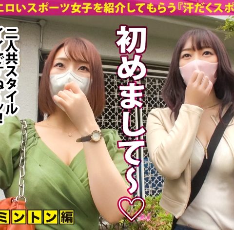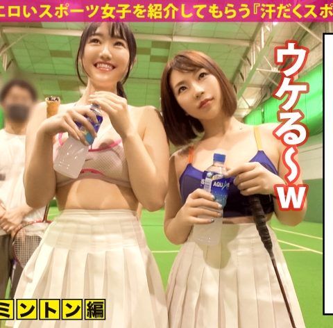 あらすじ:可愛くてエロいスポーツ女子を紹介してもらう『汗だくスポ女子』企画!今回登場したのはバドミントン女子「まな」ちゃんと「えれん」ちゃん!巨乳が丸見えなスポーツウェアに着替え、バドミントンで汗を流したあとは、セックスでさらにアツい汗を流します♪