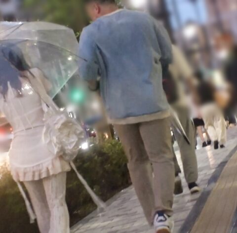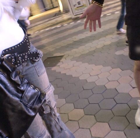 横浜の街を行き交う人々の中でも、特に露出の多いノースリーブの彼女。